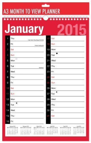 Free 2018 A3 Extra Wide 2 Colonna mese a vedere Spiral Bound Wand Planner calendario (B0081Z5FRY)